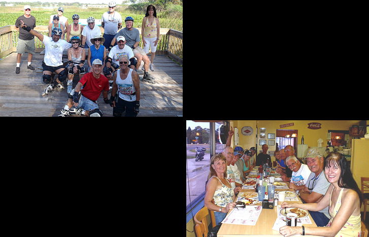 Another Beautiful Day in Paradise. It was a really nice and warm summer day with a little humidity and no breeze. Absentees Breeze, Laura, Bill, Kathy, Rob and Dee joined us. It was good to see Breeze and Laura back and Peggy again. Welcome all. We decided to just skate in the park and do 2 mile adventures. People did between 3 and 6 trips around or 6 to 12 miles. We had 5 bicyclists.