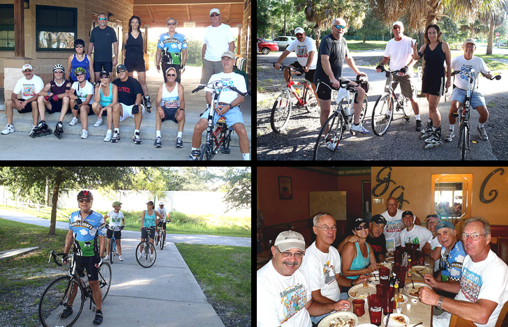 Another Beautiful Day in Paradise. The morning was a very nice sunny day with a tiny little breeze. Fortunately we finished our skating/bicycling and Brunch before the rain storm arrived. Absentees Vivian & Ken, Rick & Ginnie, Rob H, Wendy and Herb came. Welcome back all. We ended in about 3 groups. Some did 10 miles, some 11.7 miles and the rest did 14.5 miles. Well .... Rick had a flat tire and had to sit and wait for us. We had 9 bicyclists.