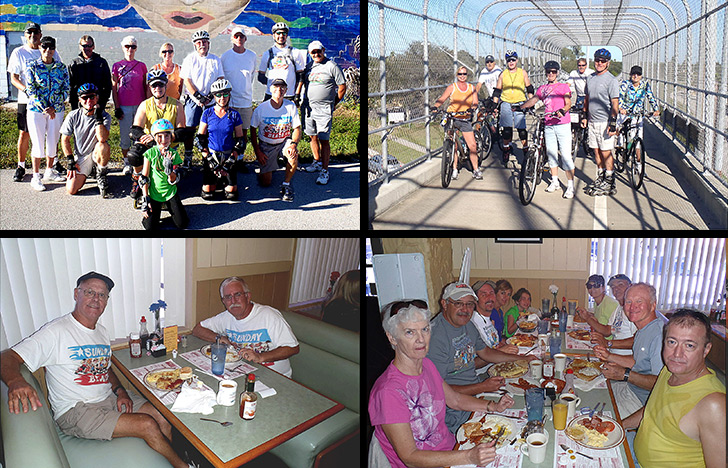 Another Beautiful Day in Paradise. The cooler weather is finally here. It was in the 60's today when we started. We also had a little wind to contend with. Absentees Tom, Kim, Delaney and Roy came. Delaney had roller blades on this time. Welcome all. We did sort of what we planned. A group went to 34th St and back for 13 miles and a group made it to the Dome and back for 17 miles. No one made it to 1st Street and back for 20 miles. The wind just made it a little tougher than planned. Andrew F and Carol J became new Sponsors today. Thanks for the web site support.