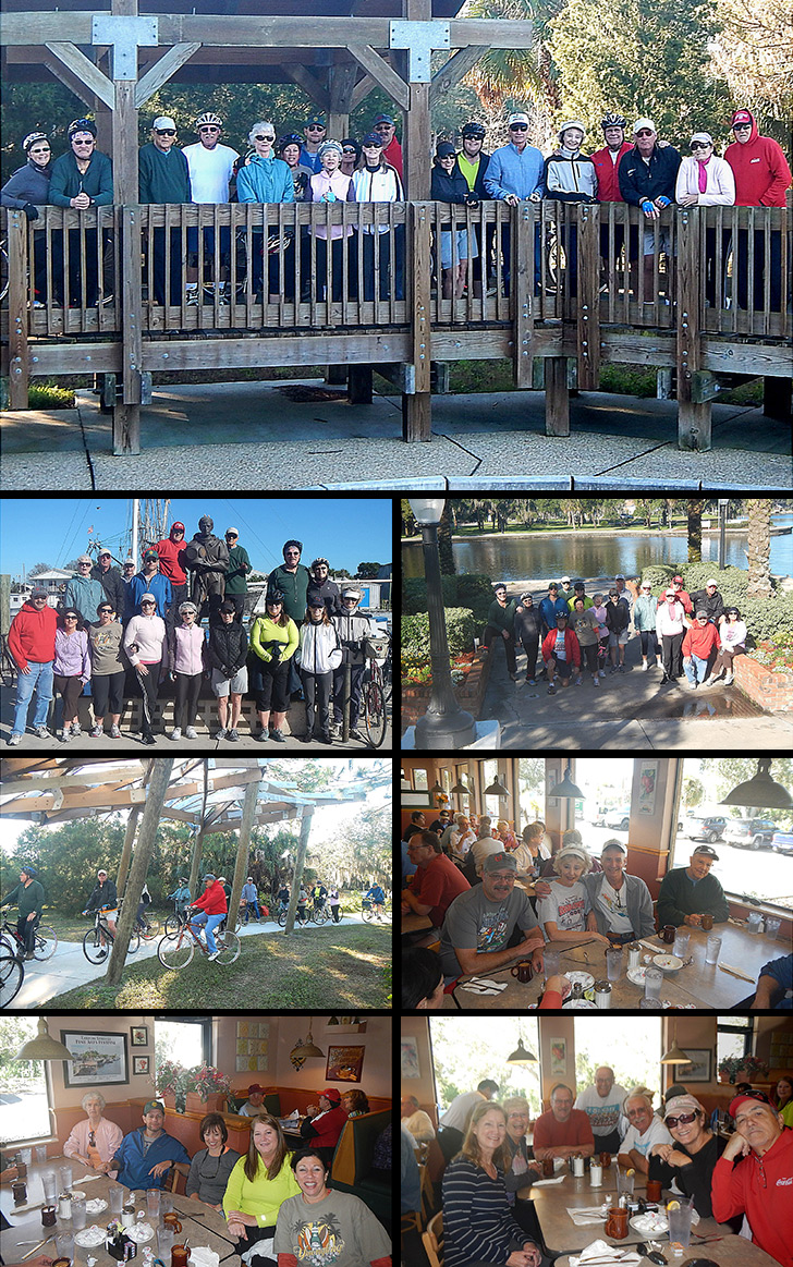 Another Beautiful Day in Paradise. Over St. Pete the skies were overcast and foggy. As one got to the Wall Springs area the skies cleared up and the sun was shinning brightly. Blader/Bicyclers Vickie & Tim K, Steve G, Dee T, Carol J, Patrice H, Dimitri F, Patricia K, Amie & Rob H, Dorey Anne, Peggy E, Karen T, Bill & Diane S, Bruce M, Roy H, Ginnie S and Rick P came. Welcome all. We missed our group at the Great EsSkate but we know they are having a grand time. After doing the Wall Springs Park we decided to head North and do downtown Tarpon Springs for a change. We had 18 Bicyclers and one Blader, Dee. The Bicyclers did 9.5 miles and Dee did 10.5 miles.