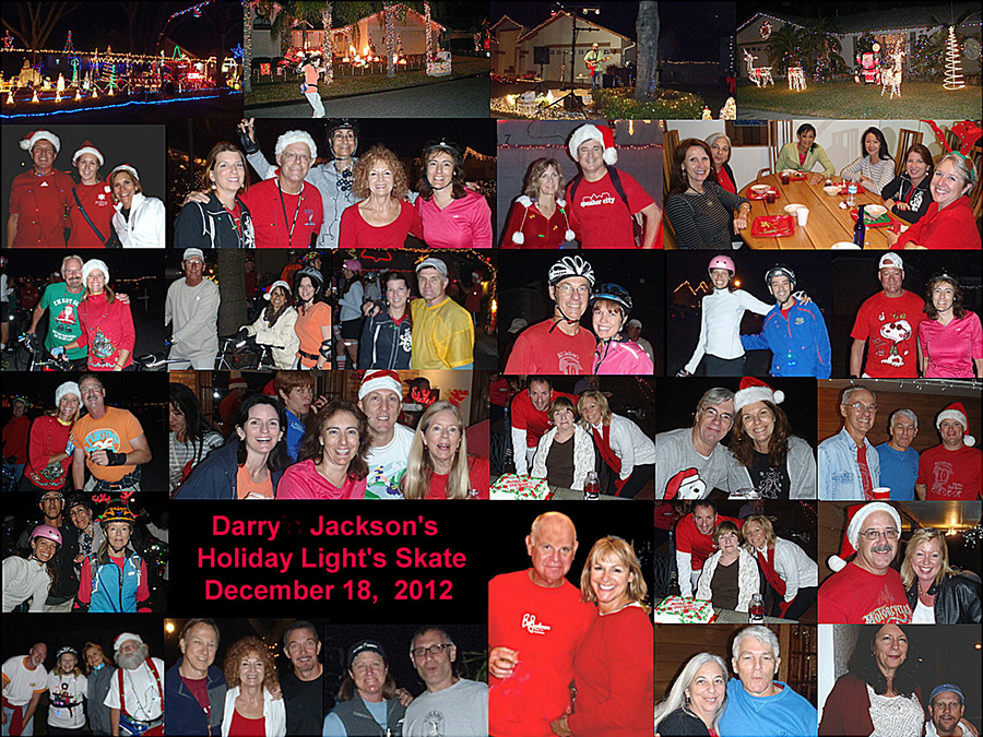 This year the weather was perfect and the Holiday Spirits were at a high. We had a good group of skaters and bicyclers to cruise the Christmas Holiday Lights. Darry led us on a wonderful tour of the beautifully lit homes in a Christmas Paradise. It was a joyous tour of being lost in the brilliant lights. Afterwards at Darry's spacious and beautiful home we all got to enjoy the large spread of delicious food and socialize the evening away. What a wonderful party for the Christmas Holidays. Thanks again Darry and your helpers for a memorable evening. HAPPY HOLIDAYS to all.